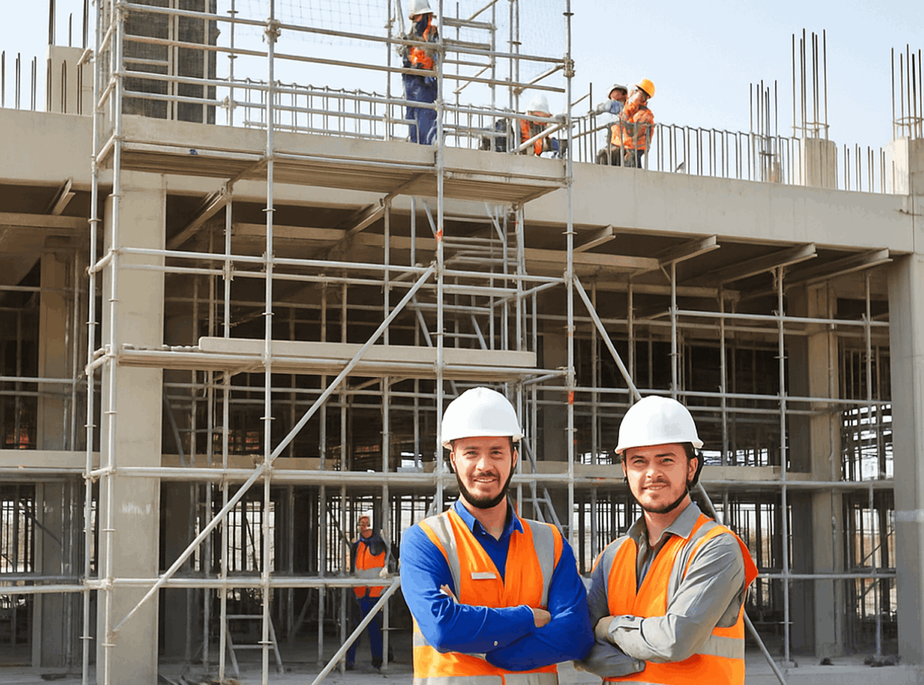 Industrial civil and scaffolding works showcasing safe erection, dismantling, and foundation construction.